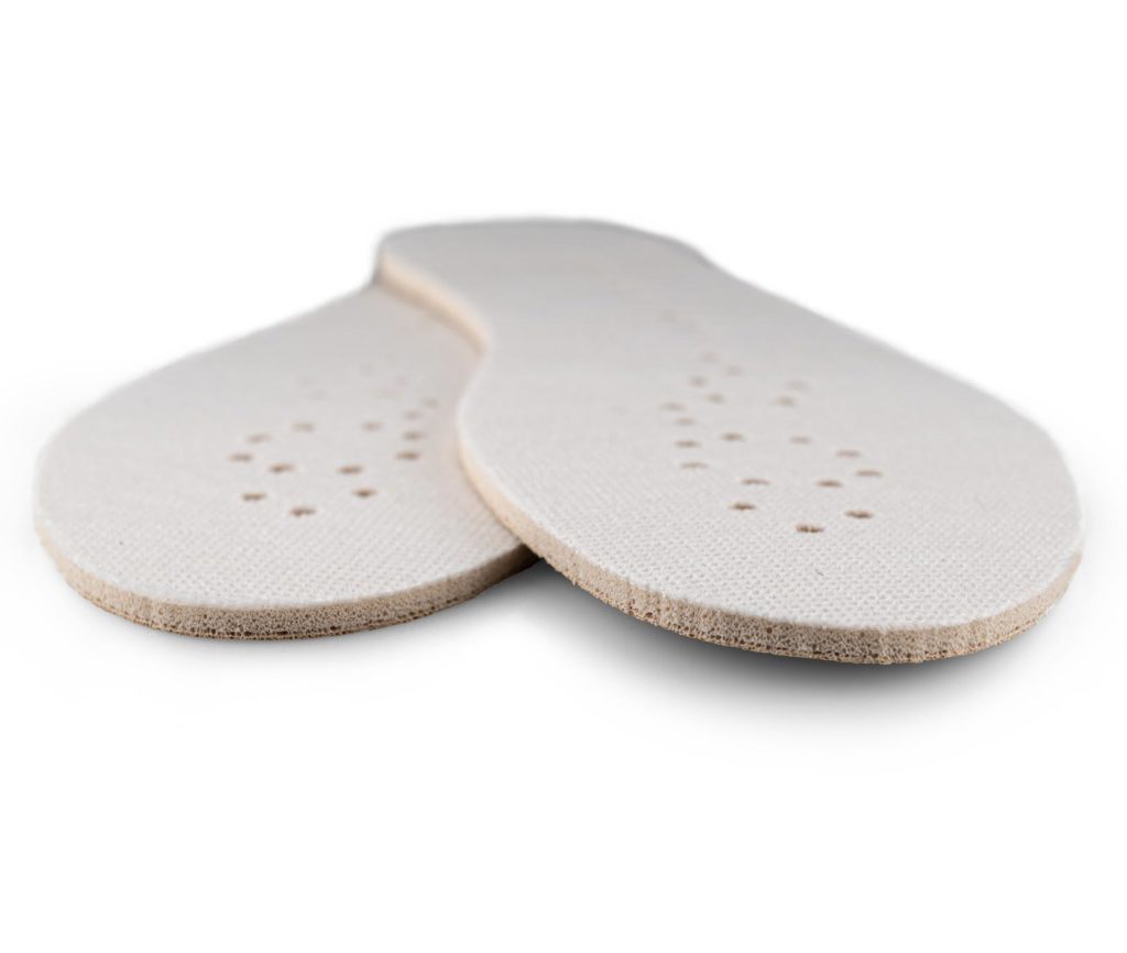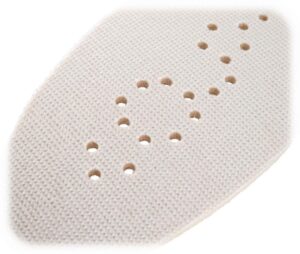 Palmilhas para patinagem artística em Latex, com sola leve em espuma, repelente de água, hipoalergénica e resistente a fungos/bactérias. Incluem cobertura em tecido para absorção de transpiração e perfuração para ventilação e fluxo de ar.