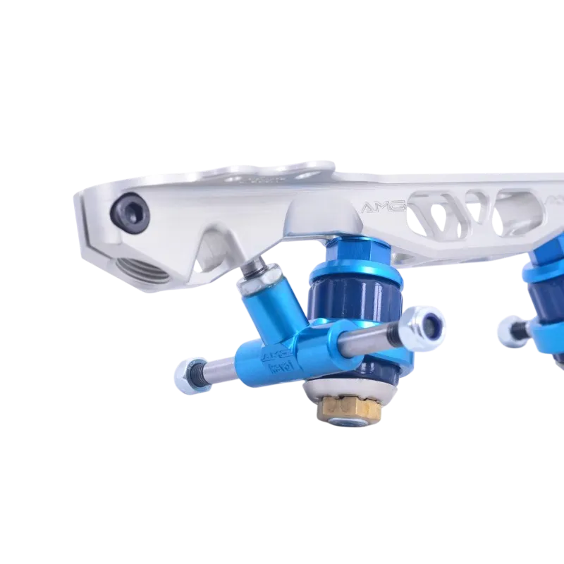 Os Patins AMG Revolution I são bases profissionais de elevado desempenho, com apenas 880 g por par, destacando-se como uma das mais leves do mundo. O seu design otimizado permite viragens rápidas e eficazes, facilita a trajetória e mantém a velocidade de execução, proporcionando uma performance superior em pista.