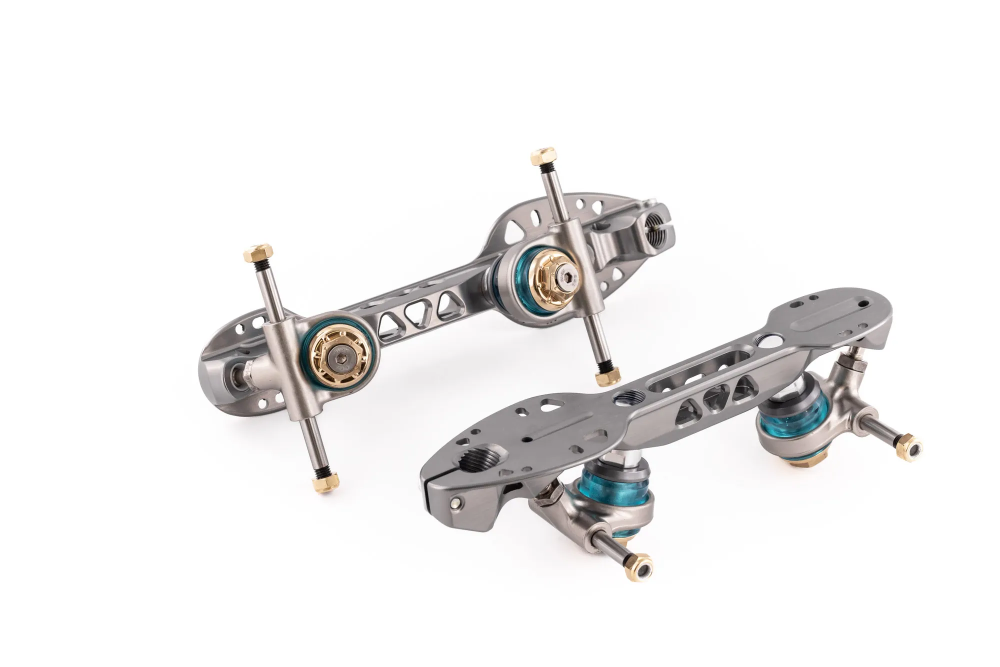 Bases em alumínio, desenhadas tanto para patinagem artística na modalidade de livres como para hóquei em patins, adaptam-se especificamente a cada pé, oferecem ajuste por cliques, incluem suspensões rebaixadas para otimizar o desempenho, e vêm equipadas com travões ambra e um kit de chaves para todos os ajustes necessários.