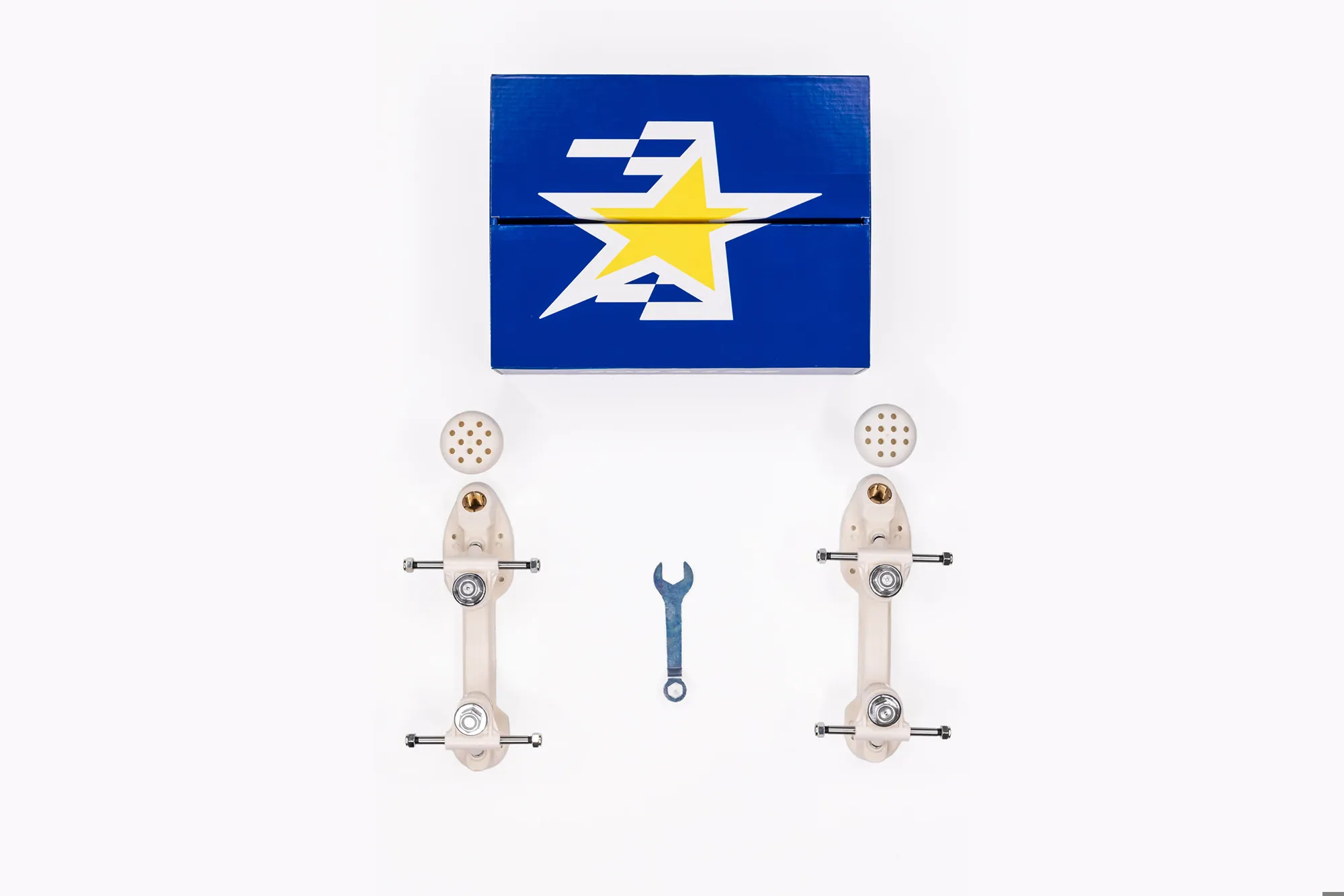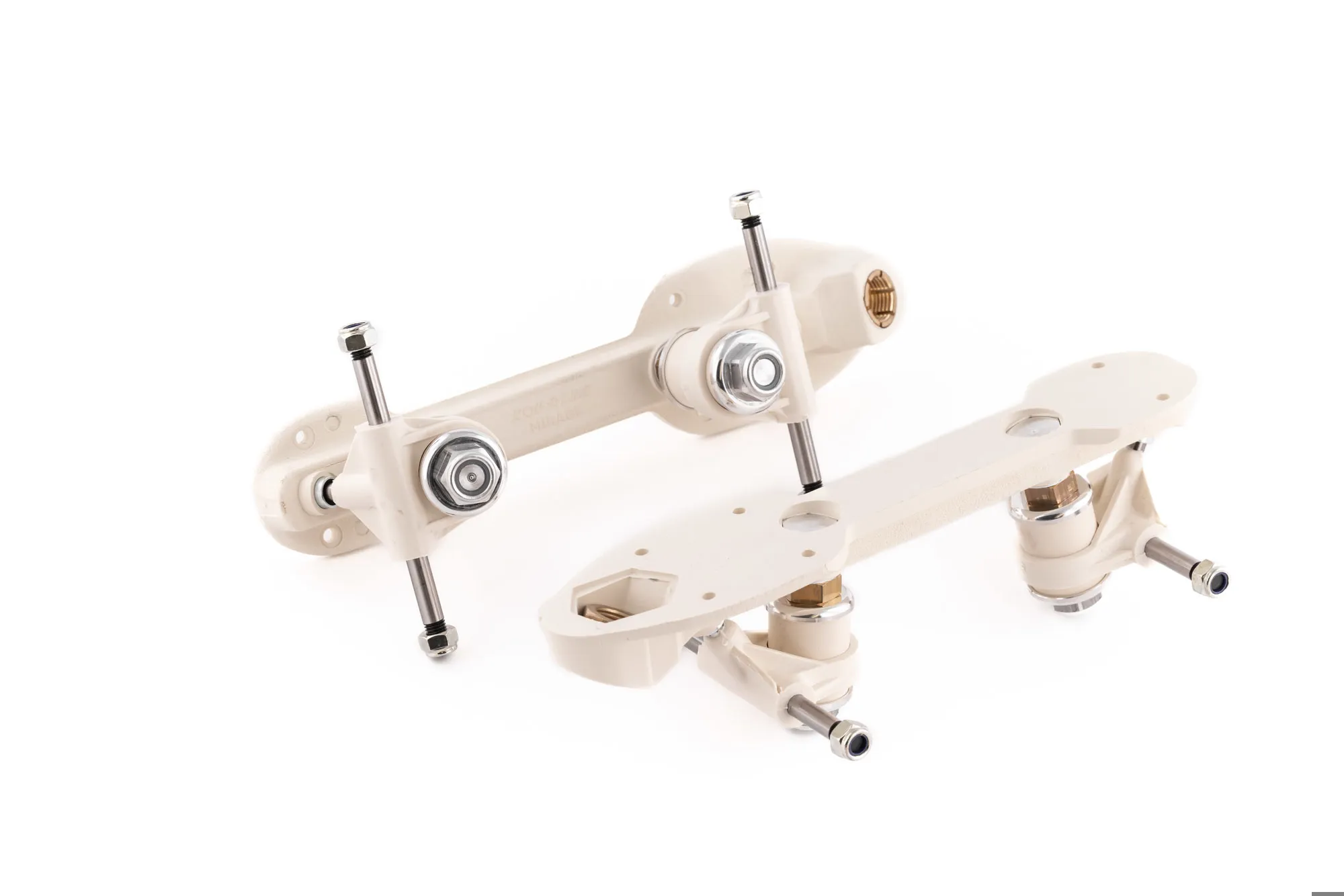 Incluem cruzetas em fibra anti-choque com eixos em aço de 7 mm para maior robustez.
