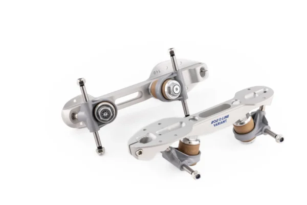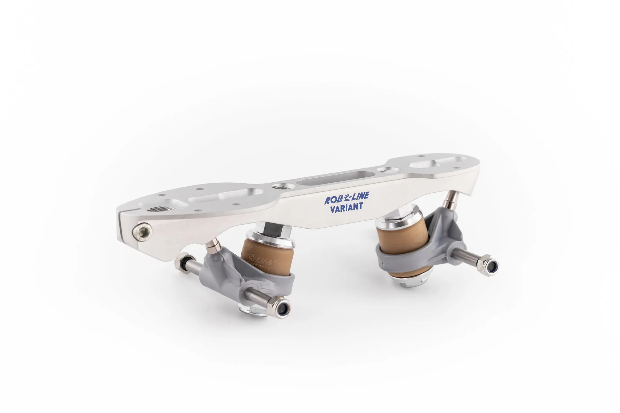 As bases Variant F, ideais para iniciantes em patinagem e hóquei, suportam saltos simples e oferecem upgrade para a Variant M com substituição das pontes de fibra por alumínio. Incluem travões cinzentos e kit de chaves.