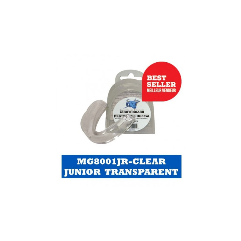 Protetor bucal transparente adaptável que evita a quebra de dentes e lesões na boca durante a prática desportiva.