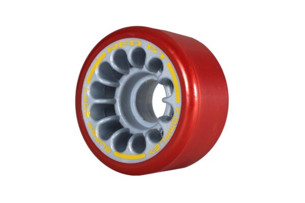 Rodas para patinagem artística, ideais para desempenho profissional, rápidas e com ótima aderência. Disponíveis em três durezas: Super-Soft (Vermelho-Amarelo), Soft (Vermelho-Azul) e Medium (Vermelho-Branco).