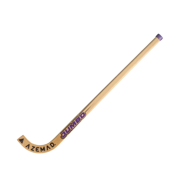 O modelo Jumbo da AZEMAD destaca-se pelo seu cabo grosso e largo, o maior da coleção, que oferece uma sensação de segurança e firmeza superior, especialmente indicado para jogadores que valorizam o controle durante o jogo. Apesar de garantir uma grande firmeza de pega, a sua geometria pode reduzir a destreza e aumentar o tempo de drible, mantendo a tradicional pá laminada de 90º adaptada ao hóquei moderno.