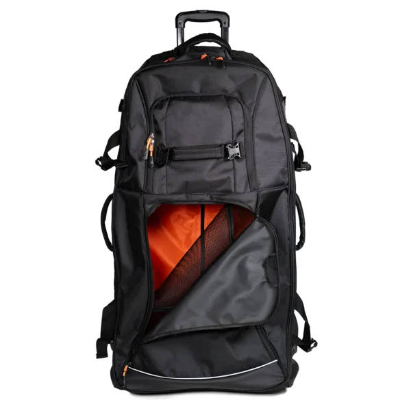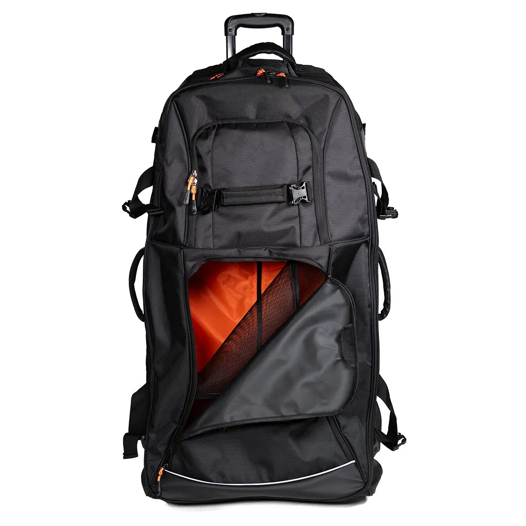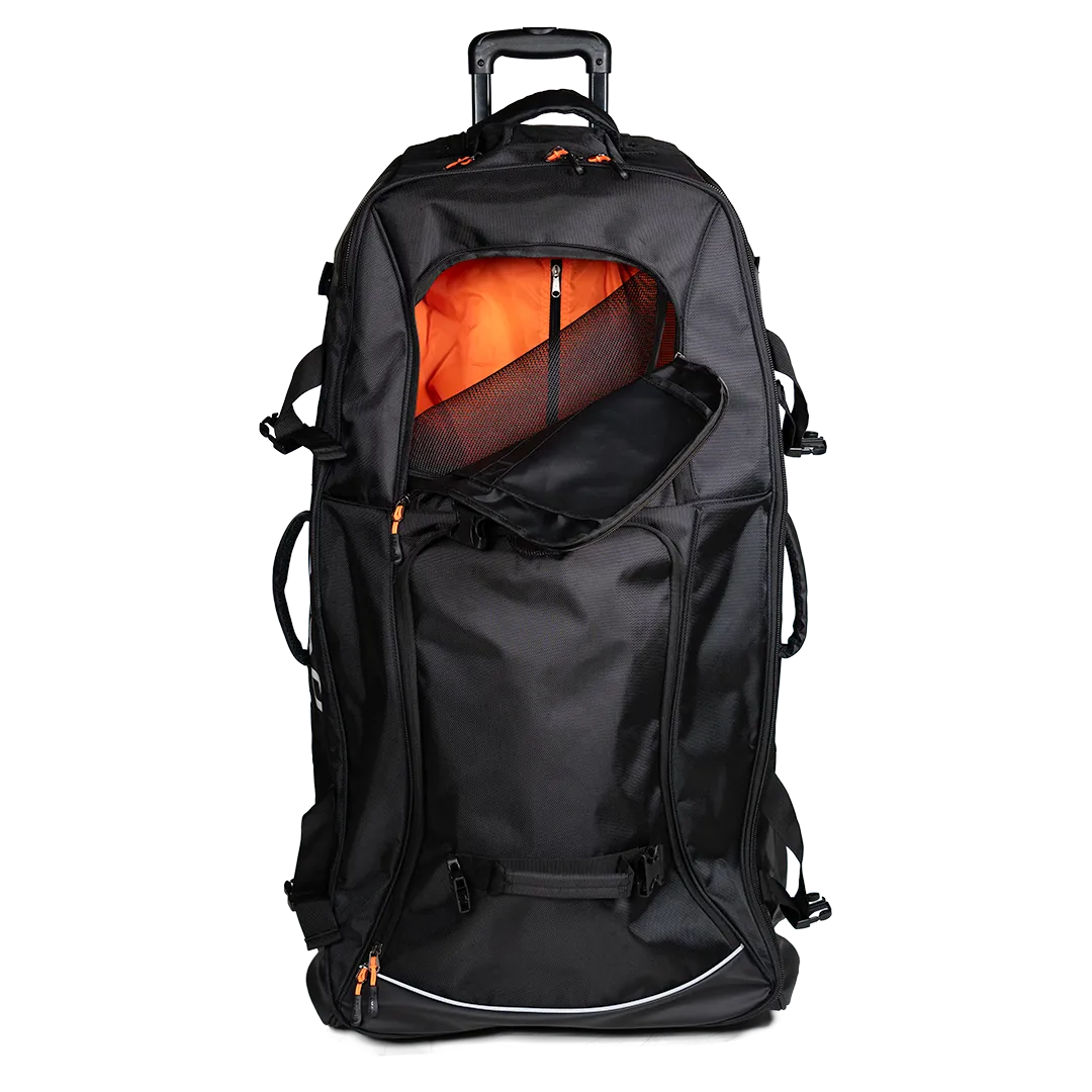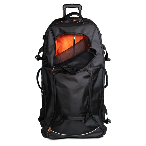 O Vault XL é um trolley grande, perfeito para o guarda-redes transportar todo o material. Fabricado com materiais resistentes, garante durabilidade e segurança. Conta com várias bolsas e compartimentos, incluindo dois separadores frontais ventilados, que mantêm o equipamento organizado e arejado. Possui uma haste de plástico de 15 cm e, além das rodas habituais, tem uma roda central adicional para proteção e durabilidade acrescida. Inclui ainda suportes laterais para sticks, tornando-o a solução ideal para atletas que procuram capacidade e fácil transporte de todo o material.